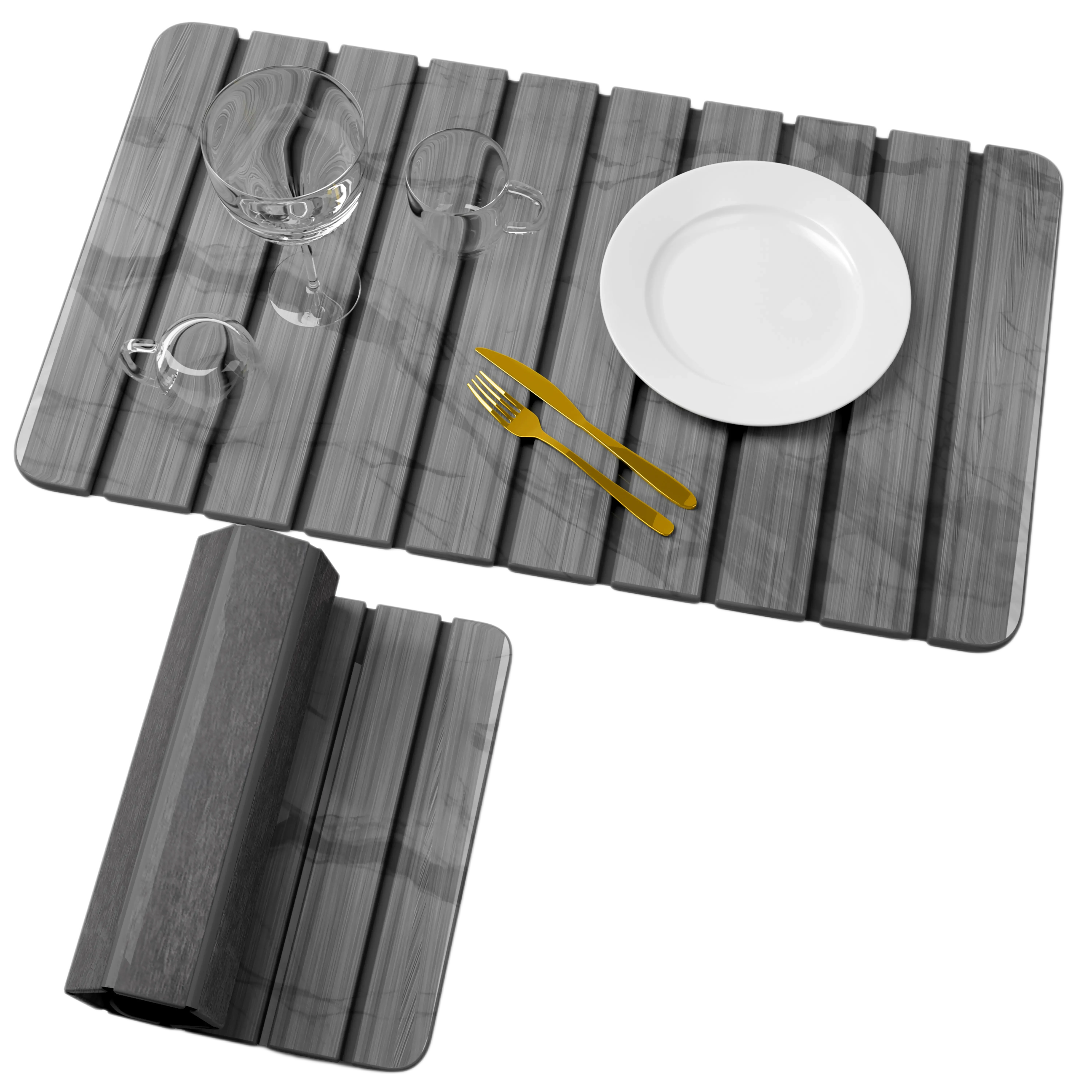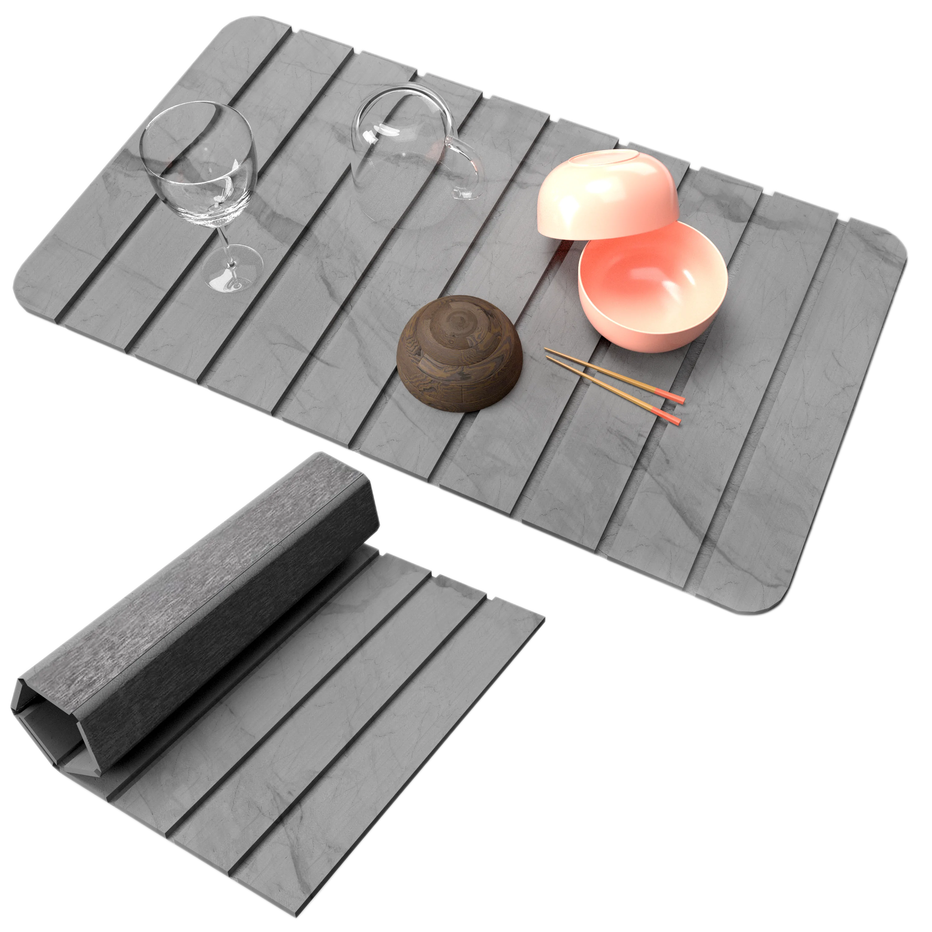 This versatile stone drying mat for kitchen counter combines the superior absorbency with a functional raised stand